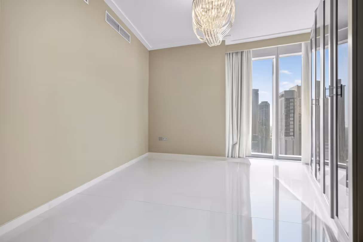 Inside, expansive floor-to-ceiling windows flood the space with natural light, highlighting sleek high-gloss floors and a contemporary layout. Outside, two private balconies offer sweeping skyline views, perfectly framing the iconic Burj Khalifa and the glittering Downtown horizon. Located in Dubai’s prestigious Opera District, this high-floor home places you steps from world-class arts, dining, and the city’s most celebrated landmarks.
