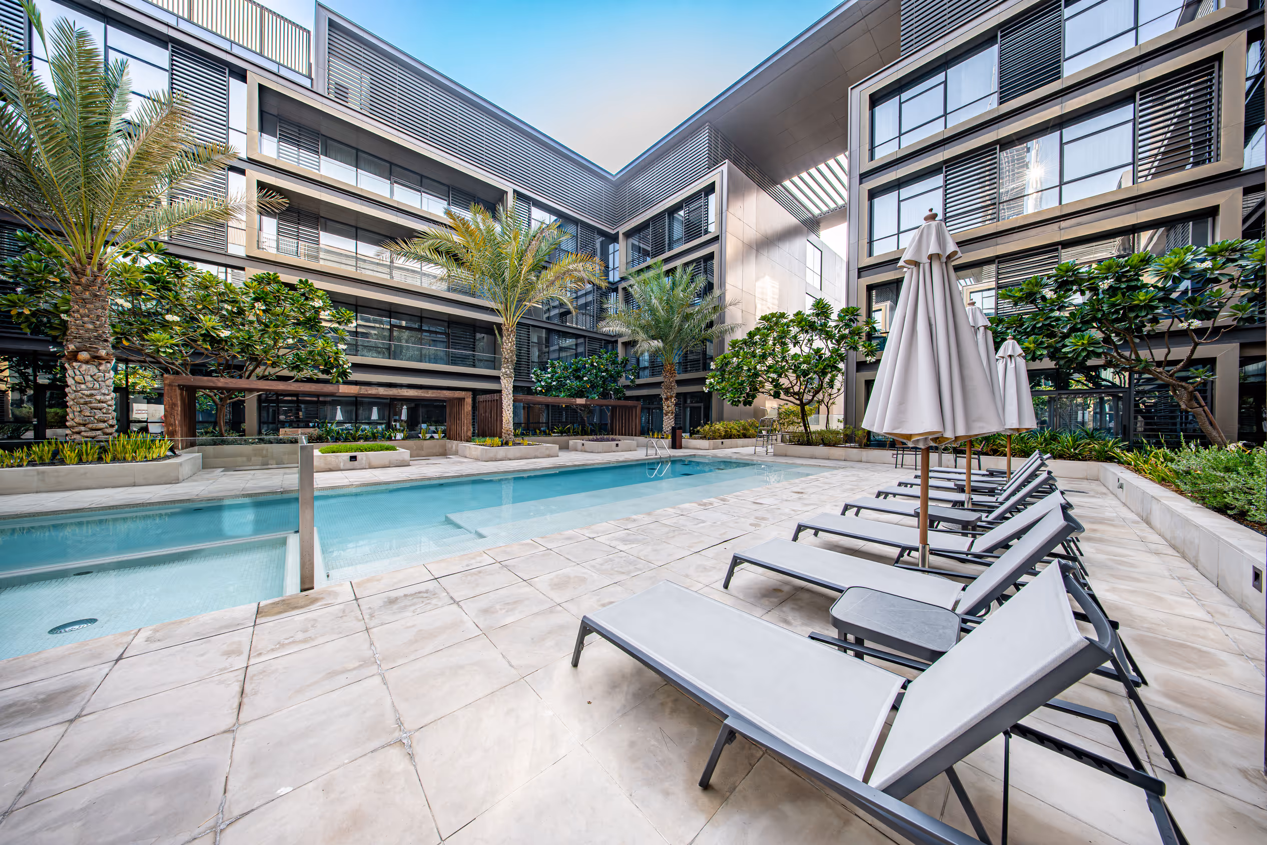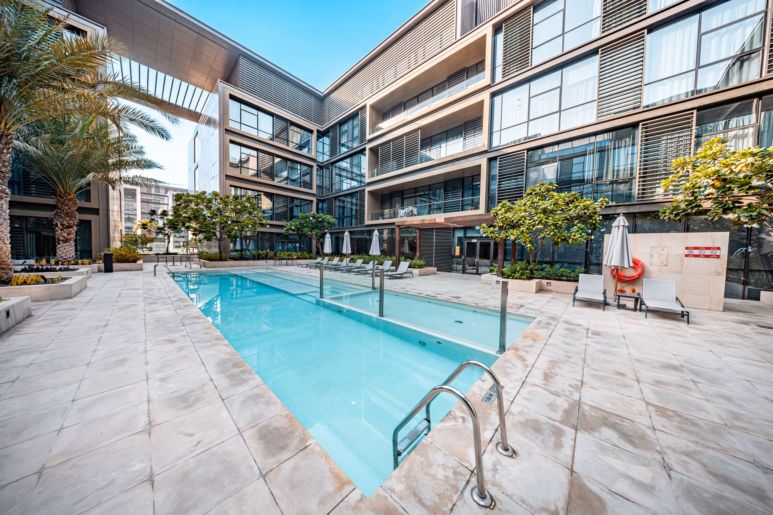 Inside, clean lines and natural light define a modern open-plan space with a sleek kitchen, spacious bedrooms, and elegant finishes throughout. Step outside to a glass-framed balcony overlooking the lush inner courtyard and vibrant City Walk energy below. Perfectly positioned in Al Wasl, this home places you steps from world-class dining, shopping, and iconic Dubai landmarks.