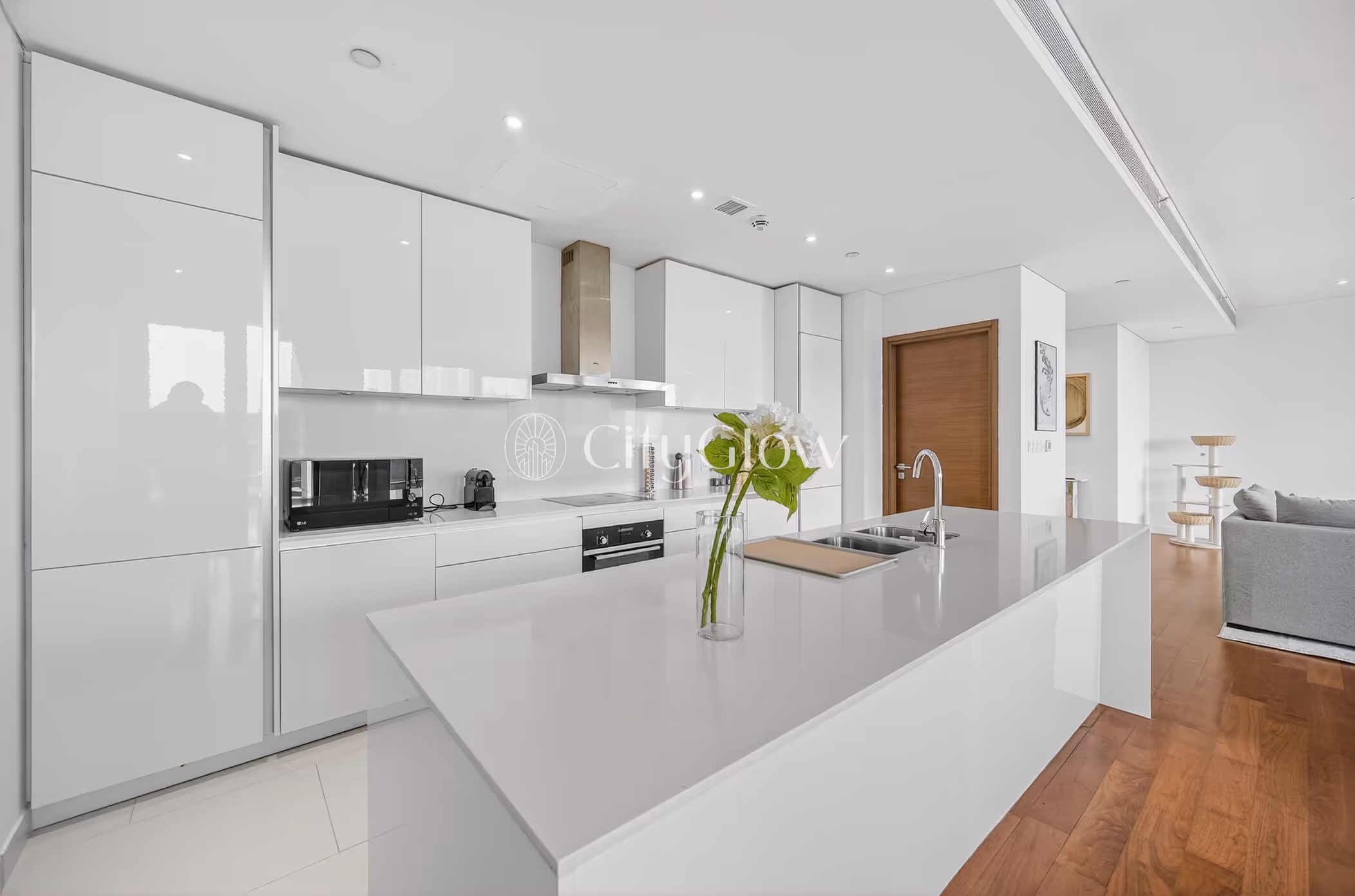 Sunlight pours through expansive windows, illuminating a refined open-plan interior with warm wood flooring and elegant contemporary finishes. A private balcony offers a retreat, overlooking the clean architectural lines and calm surroundings of this modern residential building. Set in the heart of City Walk, the home is in a vibrant, walkable neighborhood with boutique retail, dining, and effortless access to Dubai’s key destinations.
