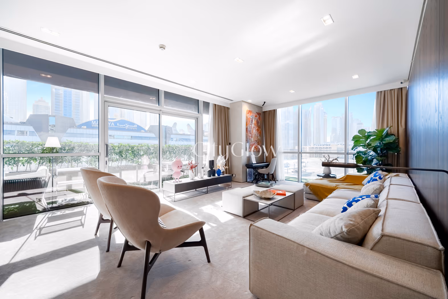 Step into a meticulously upgraded apartment with sleek micro-cement finishes, designer touches, and an expansive L-shaped layout. The wraparound terrace offers stunning sunrise and sunset views, framing the iconic Sheikh Zayed Road and Burj Khalifa skyline. Situated in the heart of City Walk, this residence provides access to world-class dining, shopping, and vibrant community amenities.