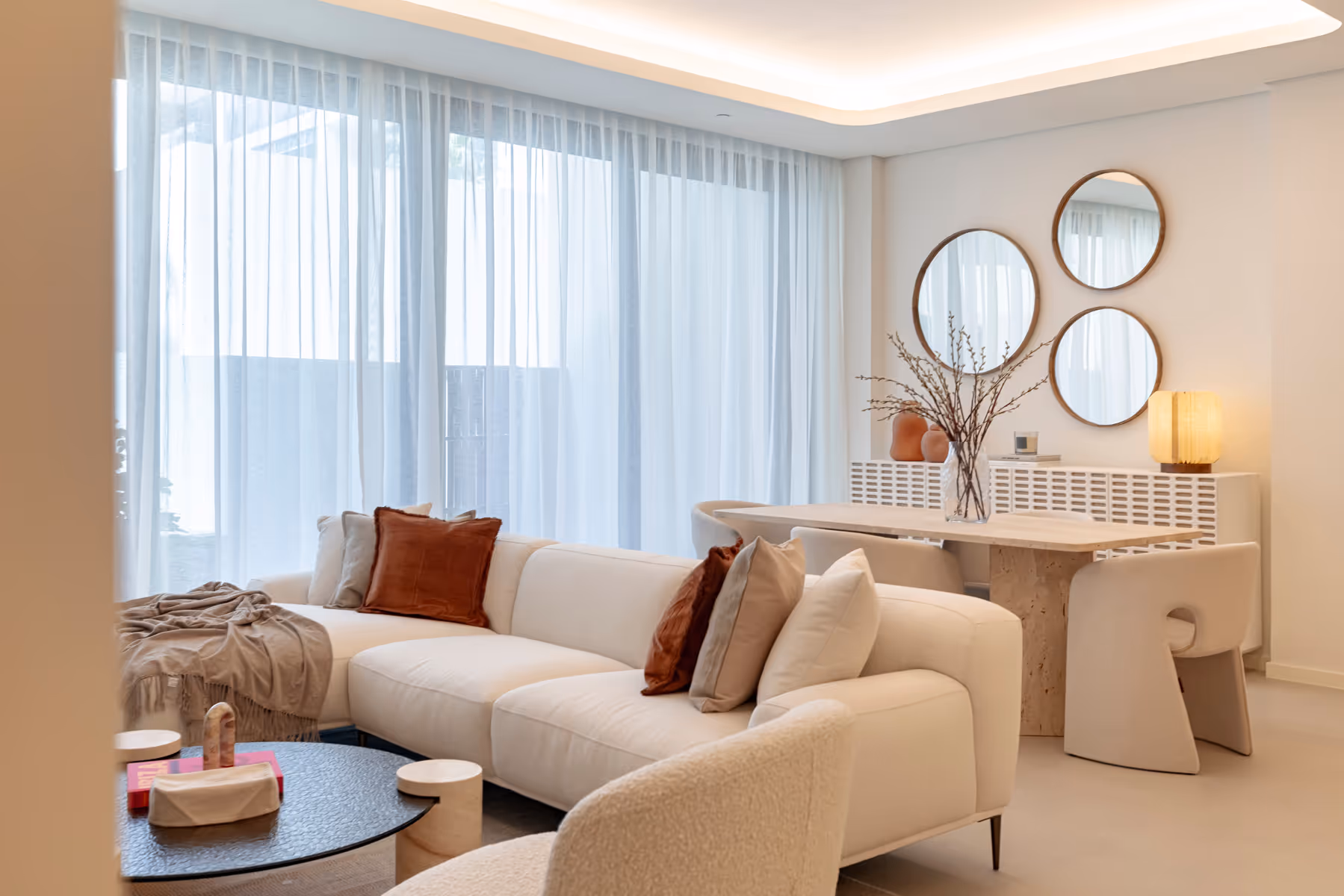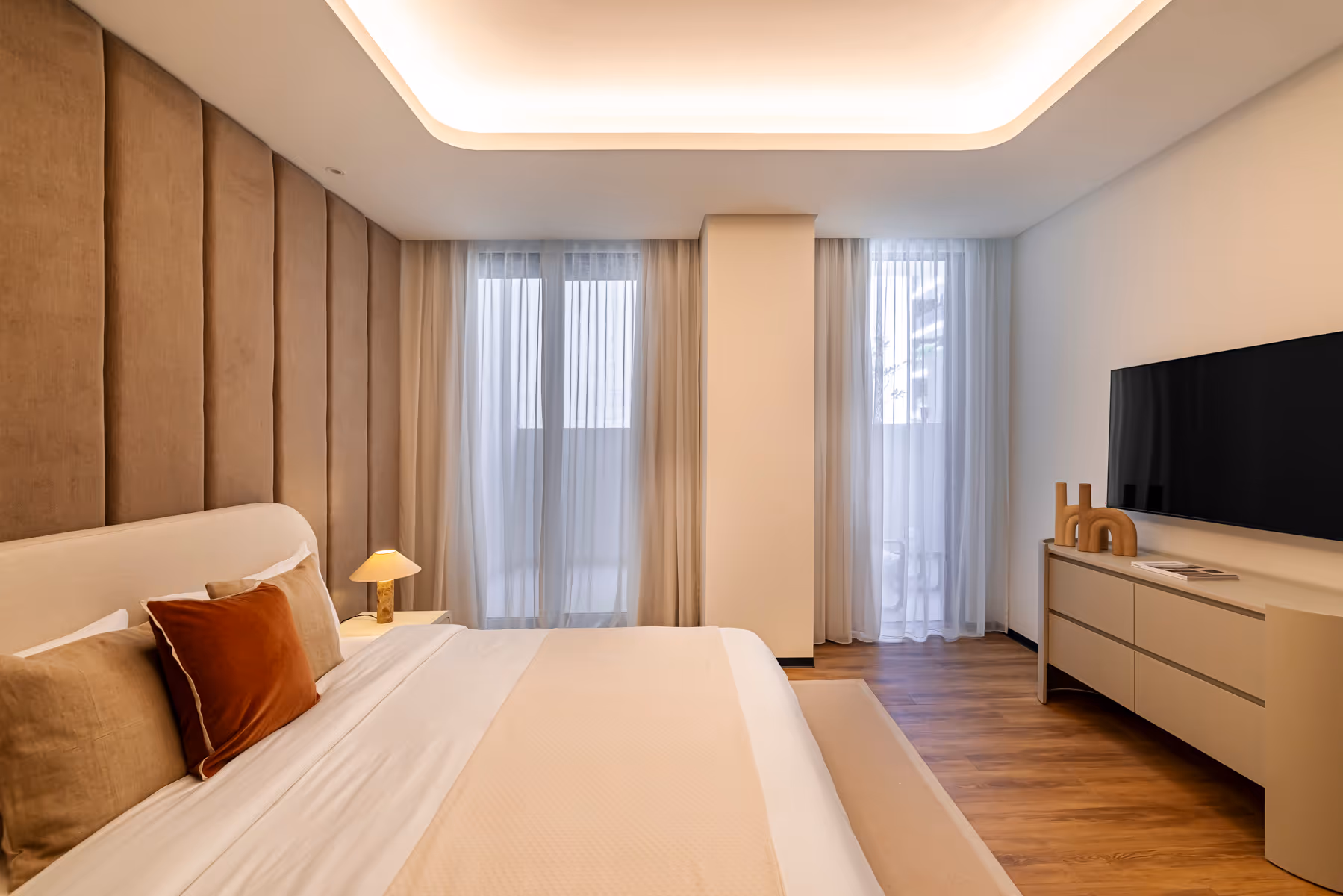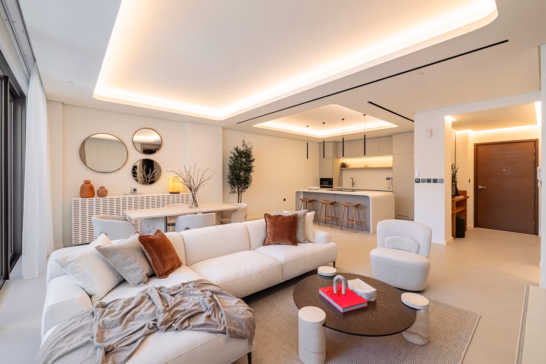 This podium-level one-bedroom apartment offers the feel of a private villa, complete with a lush garden terrace and direct pool access. Inside, a sleek Corian kitchen with premium Siemens appliances anchors the fully upgraded, open-plan layout. Elevated ceilings, custom lighting, and modern finishes bring both sophistication and comfort. From the tranquil bedroom to the sun-soaked outdoor space, every detail is crafted for effortless everyday luxury.